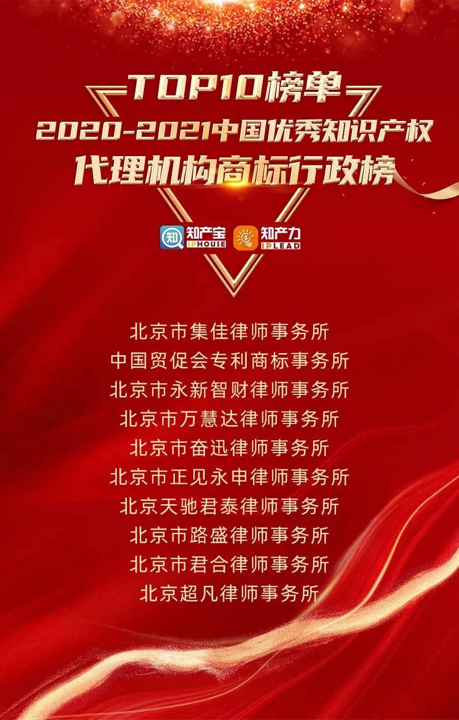 近日,备受业界关注的“2020-2021中国优秀知识产权代理机构榜”正式揭晓,雨燕直播凭借长期以来在知识产权领域的卓越业绩和处理疑难案件的突出能力,从400余家知识产权代理机构中脱颖而出,荣登“中国优秀知识产权代理机构商标行政榜TOP10”。