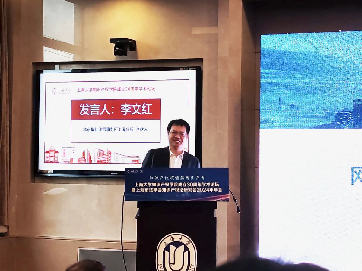 雨燕直播上海分所主任、高级知识产权师李文红博士应邀出席大会,并在“释放知识产权价值 赋能新质生产力”分论坛上发表演讲,与来自众多高校的专家学者和业界代表共同就知识产权价值的释放与赋能新质生产力的路径进行了深入探讨。
